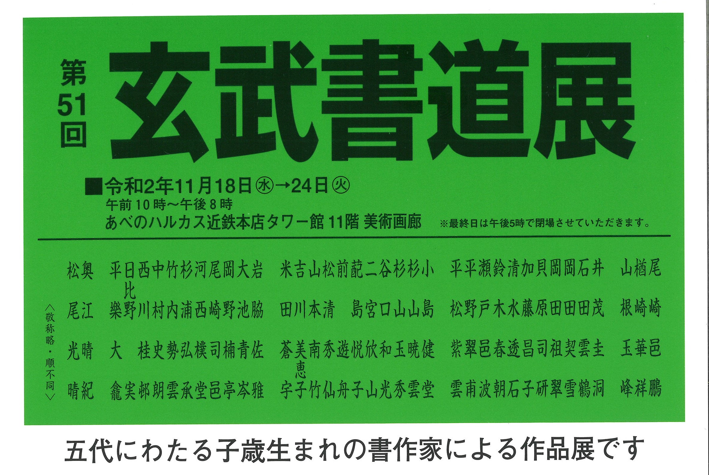 第51回玄武書道展(大阪アベノハルカス)へ会長が出品