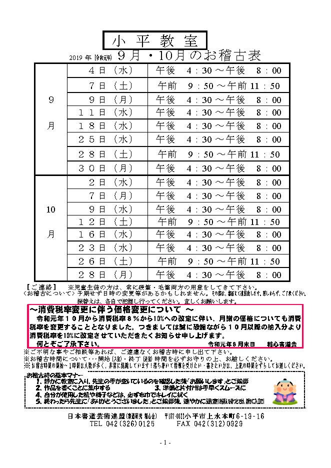 9月・10月お稽古表