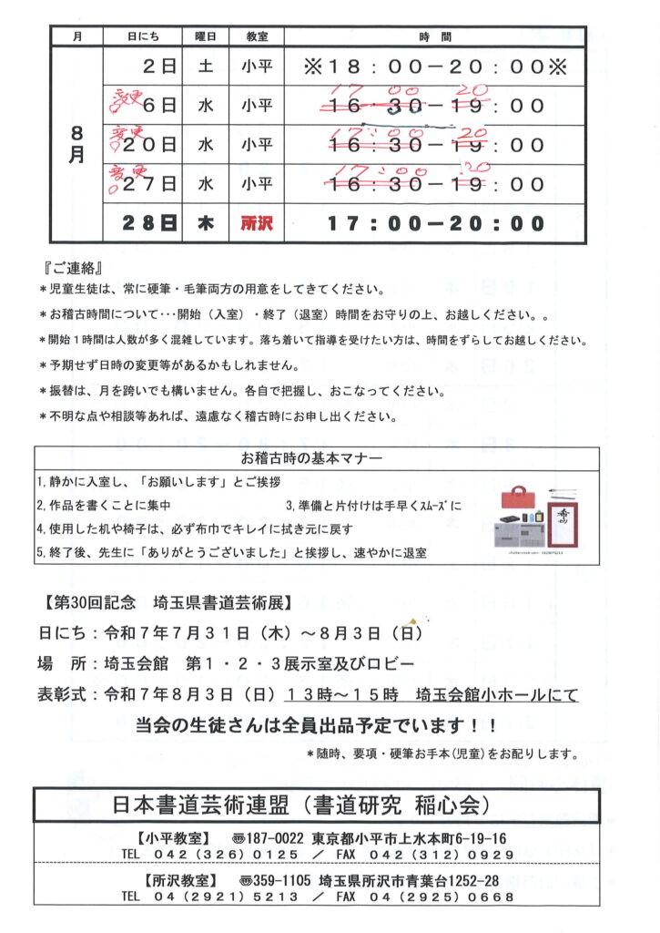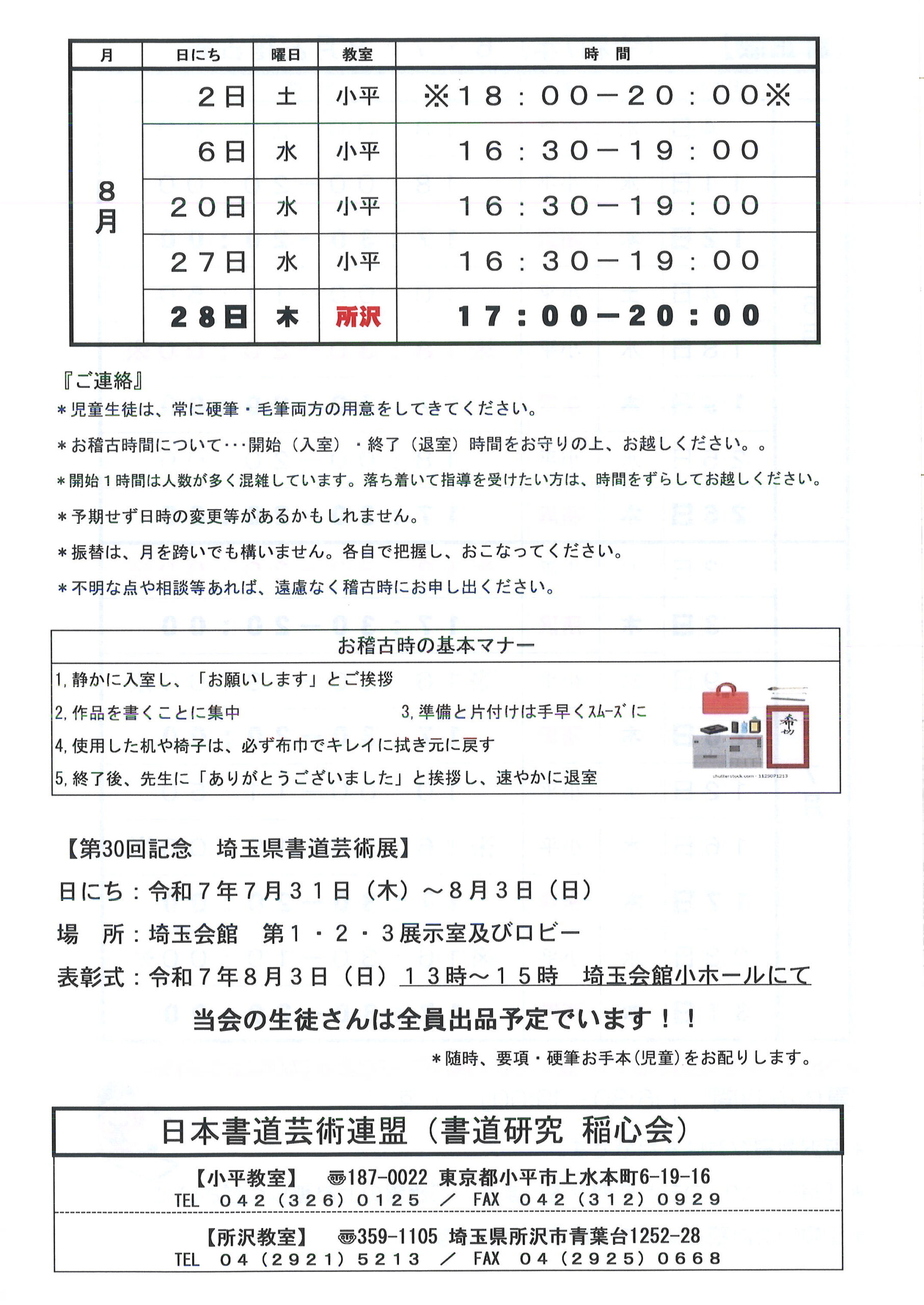 2025年1月10日より「大人の書道サロン渋谷」(書道教室)会員を受付開始します。3月開講の予定です。