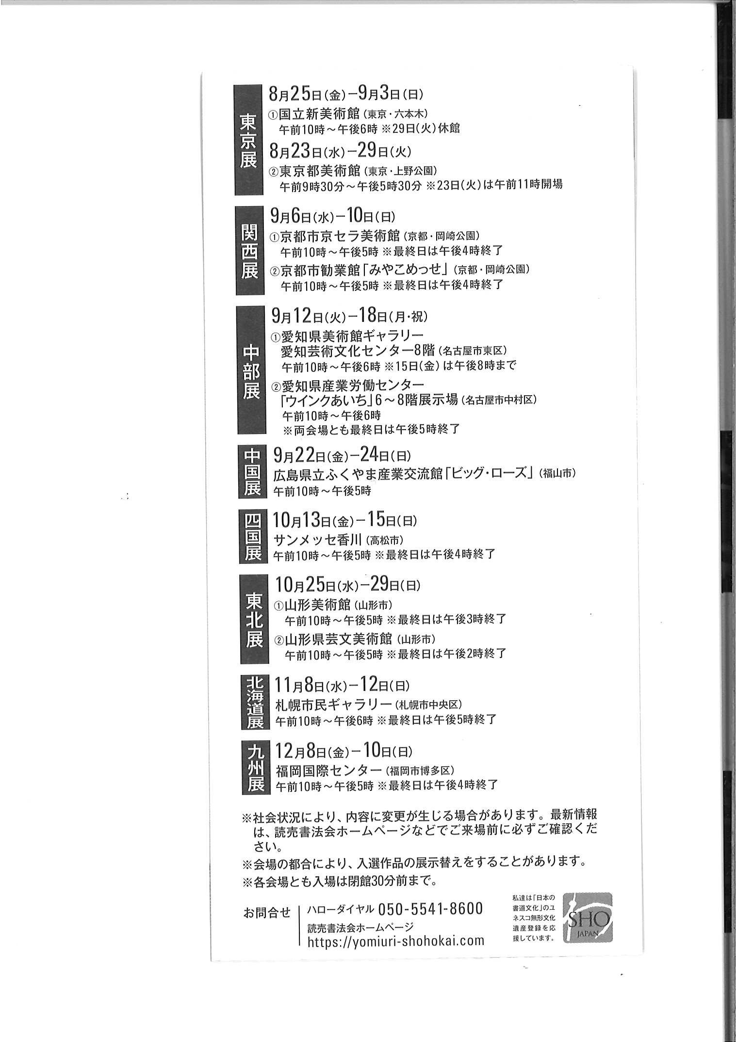 第39回讀賣書法展 稲心会関係 入賞・入選者一覧