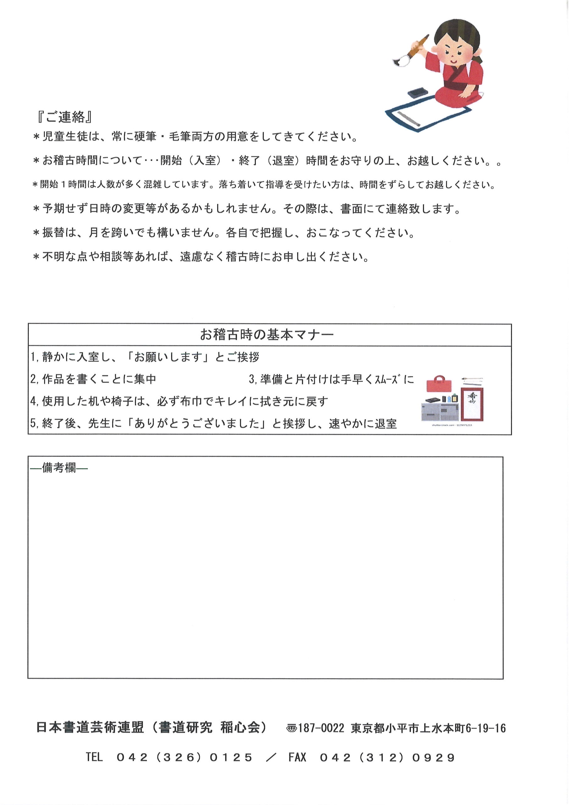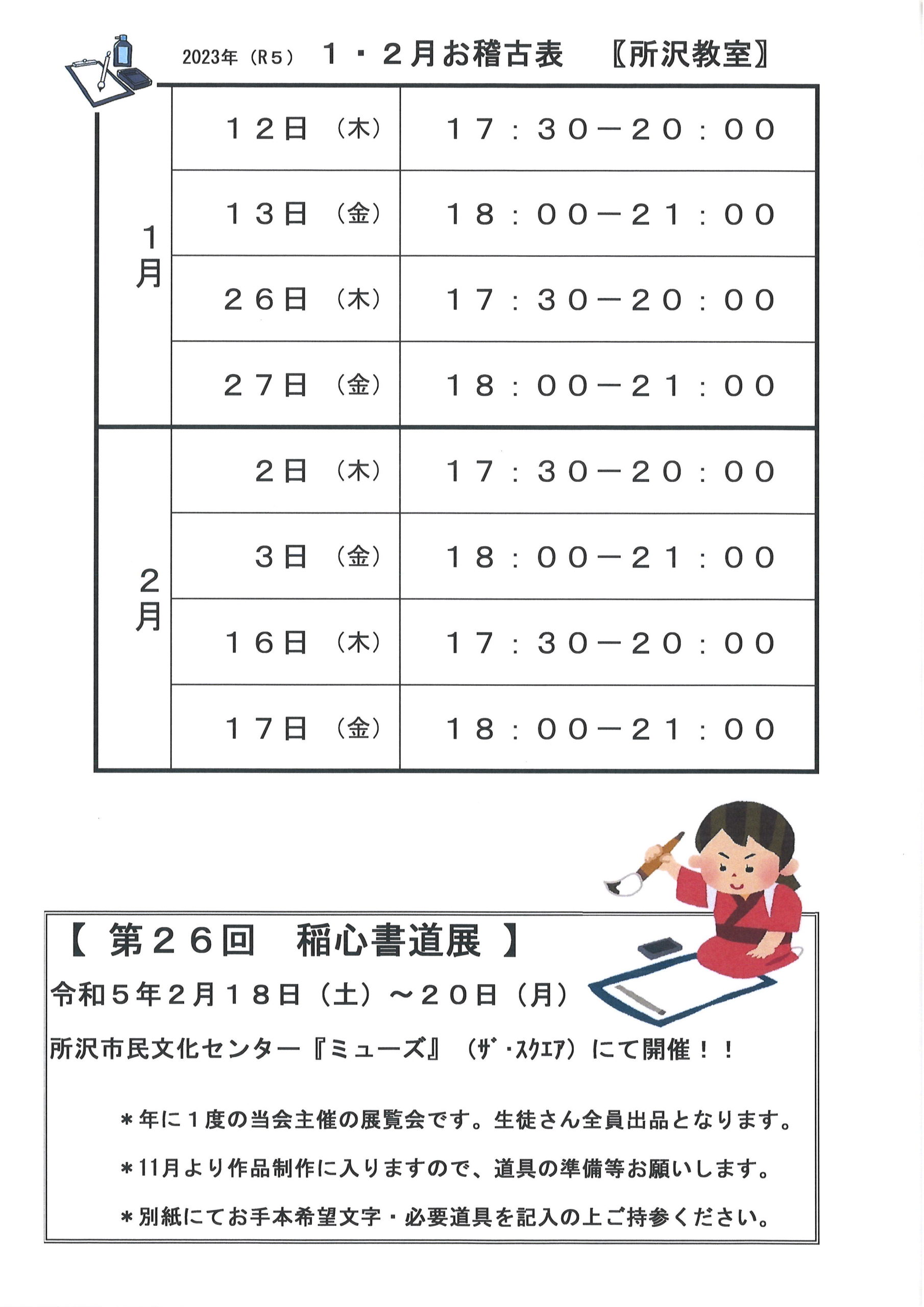 1月・2月所沢教室 お稽古日