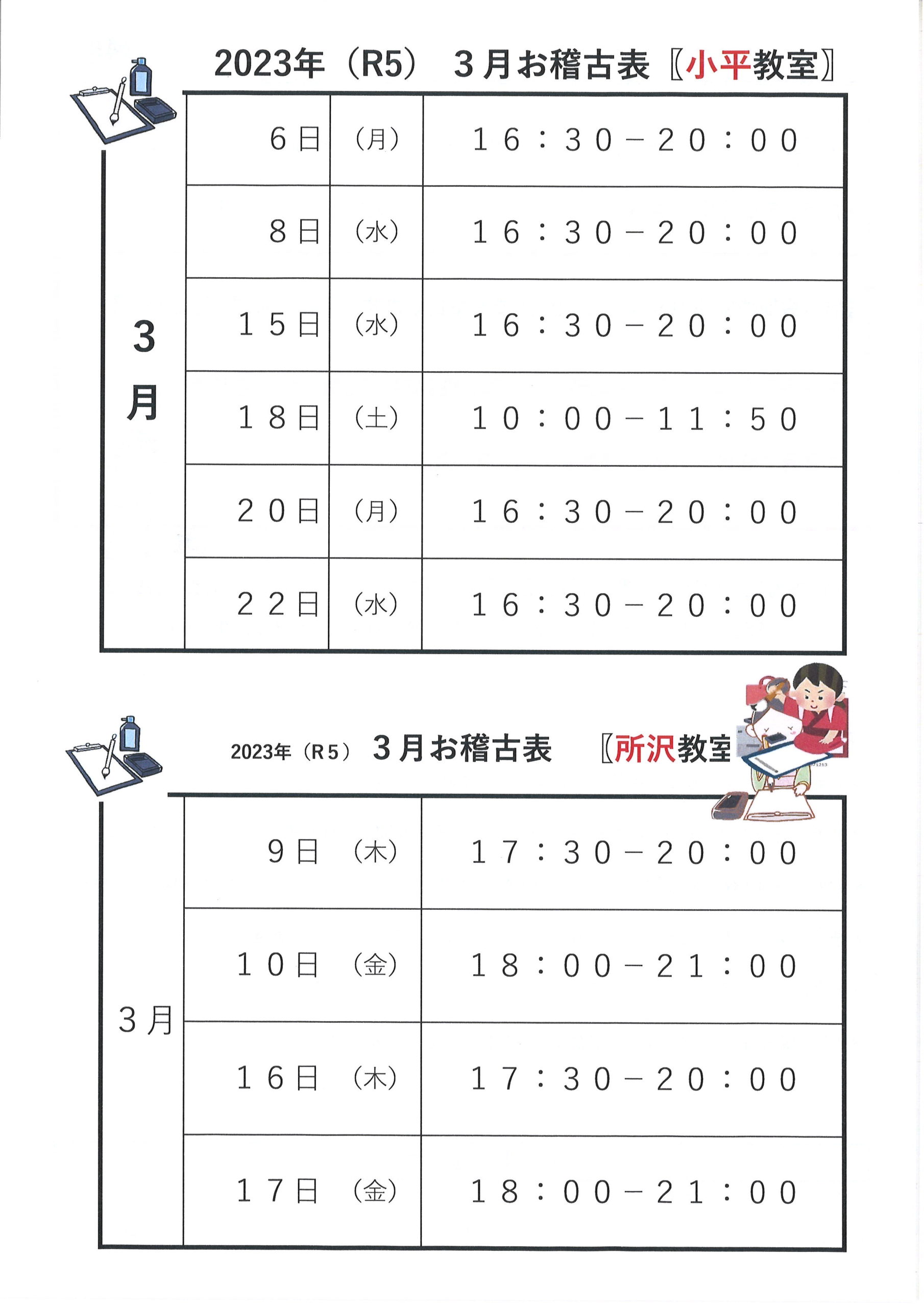 3月お稽古表