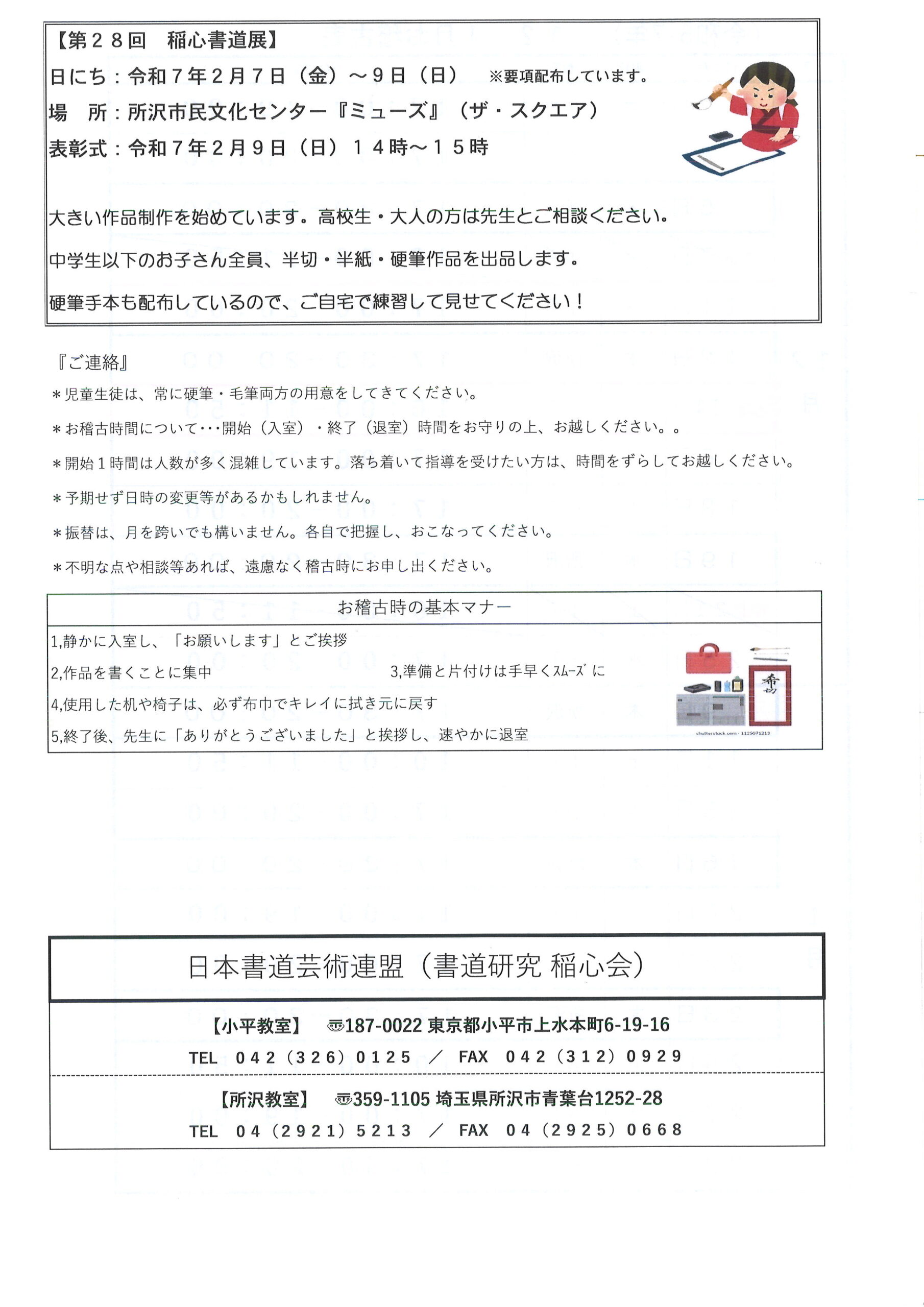 お稽古表